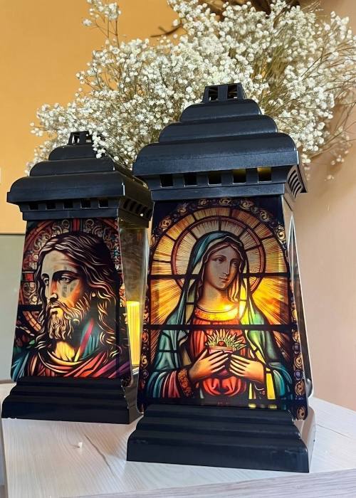 Унікальні лампадки поєднують в собі сучасний дизайн та глибоку духовну символіку. Кожна модель виготовлена з якісного матеріалу з імітацією вітражного скла, що зображає святі образи: