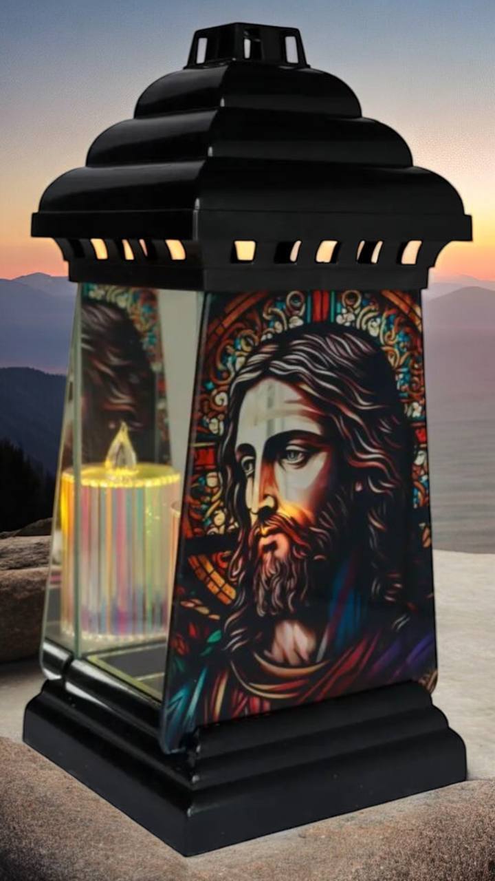Лампадка вітражна "Ісус" з led-свічкою (31 см - висота)