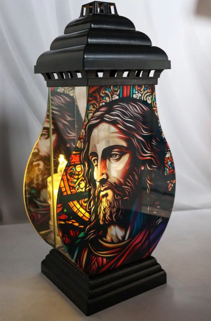 Лампадка вітражна "Ісус" з led-свічкою (40 см - висота)