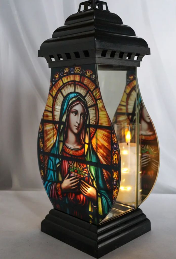 Лампадка вітражна "Марія" з led-свічкою (40 см - висота)