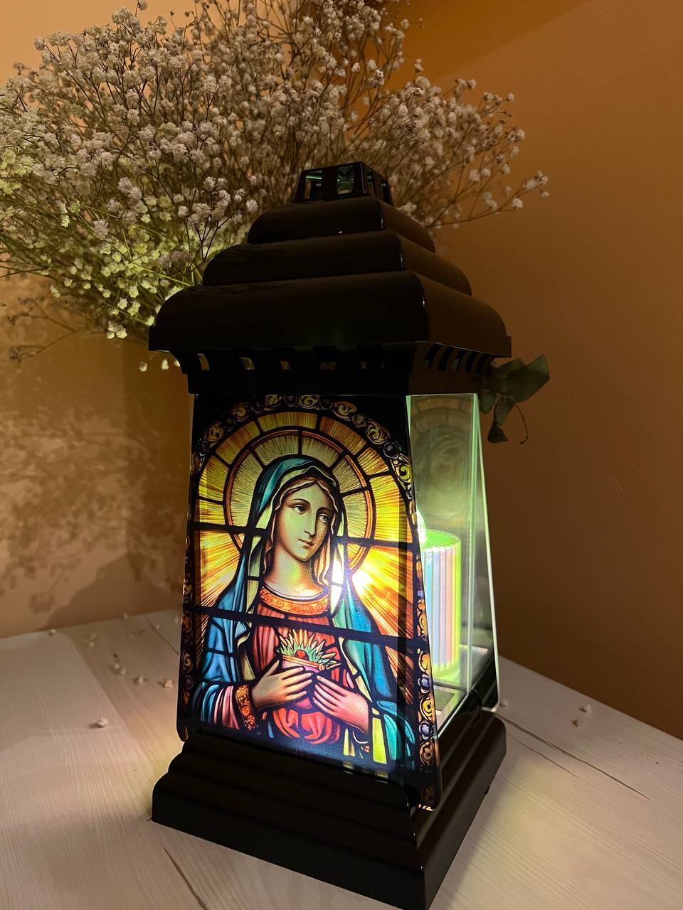 Лампадка вітражна "Марія" з led-свічкою (31 см - висота)